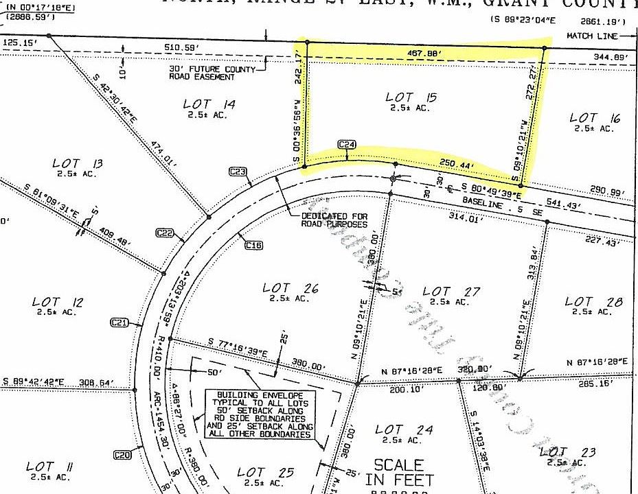 2.5 +/- acre lot in gated community with community water. View of City of Moses Lake. Desert Hills is bordered on the south & west by Government Land.