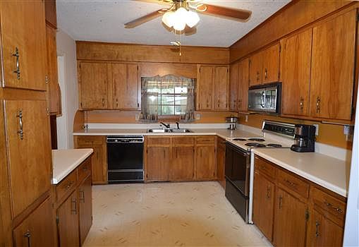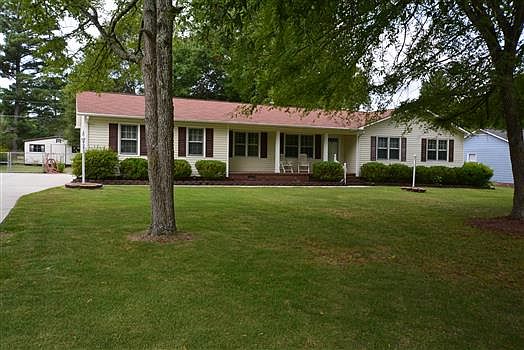 Ready for your personalization! Newer HVAC, roof, water heater, and driveway. 3 bedrooms, 2 baths, 2 car side entry attached garage. The kitchen has an abundance of cabinet space; the great room is oversized and features a wood stove fireplace. There are 3 separate large storage buildings in back-- a handyman's dream! There is also a workshop in the garage. The back yard also features a covered deck as well as a separate deck, excellent for entertaining. This one owner home is ready for your updating. Located on a gorgeous half acre lot with no city taxes.