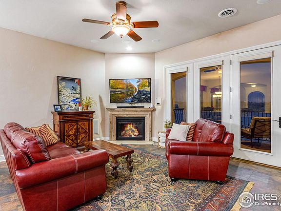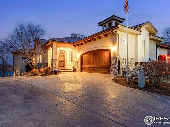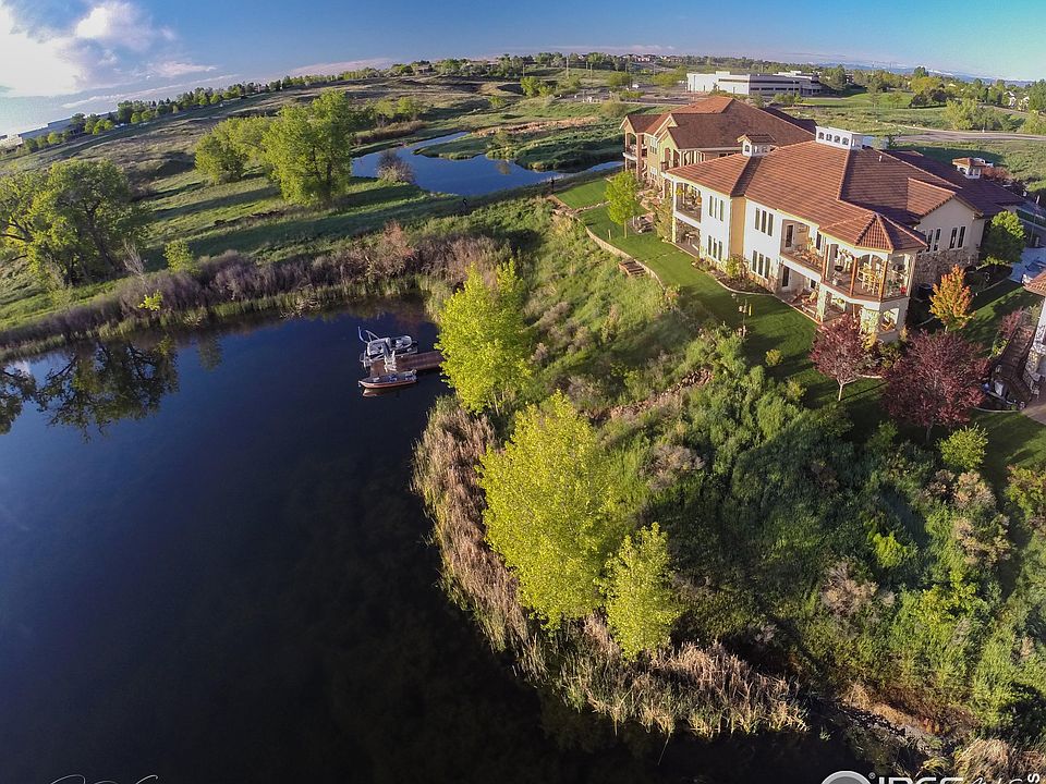 Immaculate home on private lake in Loveland, surrounded by open space & trails w/ mountain views from the deck! Located on highly sought after street in prime location w/ private drive. Custom extended deck equipped w/ outdoor kitchen & heat. Deck access from huge master boasting luxurious master bath & fireplace plus incredible walk in closet w/ built-ins. Second large suite on walk out, lower level also has patio access. Private hot tub included. Entire home has soaring ceilings & water views from windows. Colorful flowerbeds bloom from Spring thru Fall. Enjoy the gourmet kitchen w/ stainless appliances, island & all the bells & whistles, wet bar w/ mini fridge in rec room & full theatre room including all equipment. Main floor office/3rd bedroom has gorgeous built ins including murphy bed. In floor radiant heat, spacious storage room & even a brand new water heater! No detail has been overlooked in this Spanish style paradise!