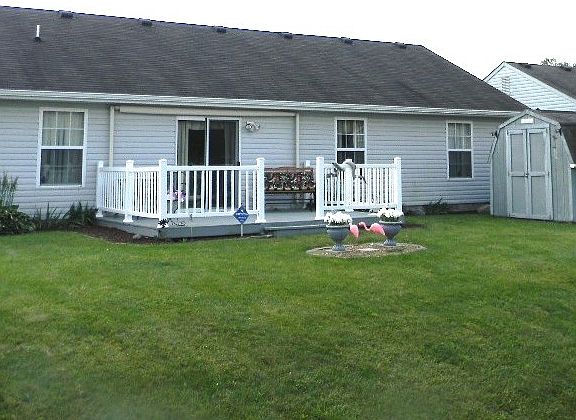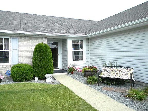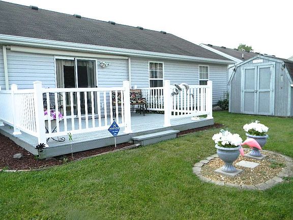 Beautifully maintained home is absolutely ready to move into. Perfectly landscaped, immaculate interior offering vaulted ceilings, neutral decor, fully applianced kitchen, split bedroom floorplan, wood deck with vinyl rails and Sunsetter awning plus storage shed. Three bedrooms, two full baths, two car attached finished garage, newer furnace and central air, newer water heater, all new vinyl guttering, downspouts and fascia . . . . as close to perfect as you will find!!!