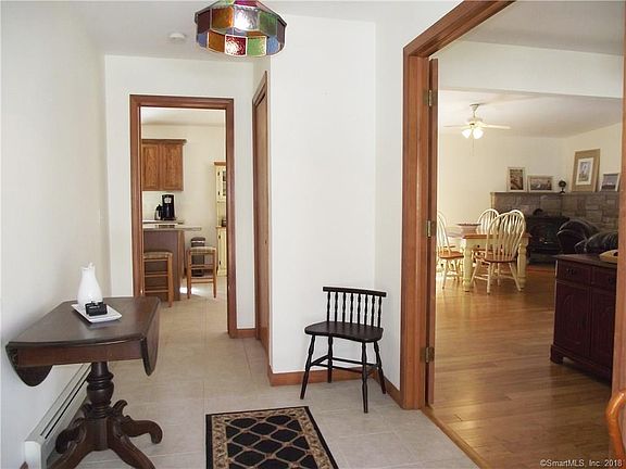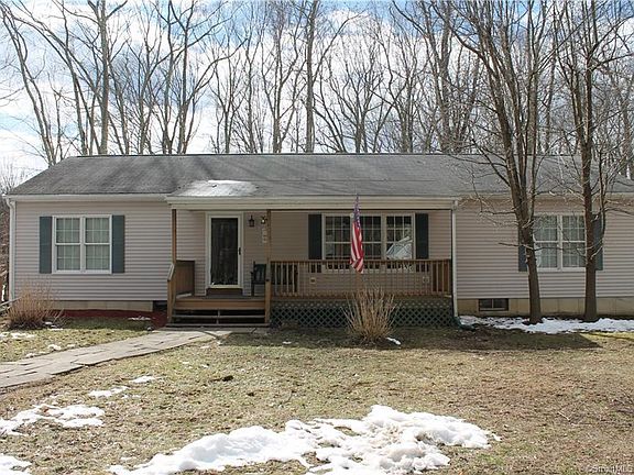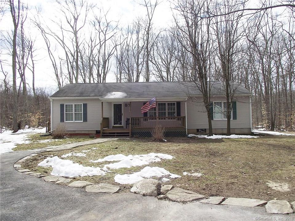 Nature Lovers Delight You will fall in love with this 1680 square foot ranch with an open concept floor plan and an abundance of natural light. A large foyer greets you as you enter and leads you into the living room through french doors or you can head straight into the kitchen, with a center island and granite counters. The large master bedroom has a walk-in closet and full bath with double sinks. There is a second full bathroom with first floor laundry. All the walls have been freshly painted, brand new carpet in the bedrooms, bamboo floor and tile through out the rest of the home. Don't worry about losing power, there is a wood stove to keep you warm and the home is wired for a generator. Other features include full basement, pull down stairs to the attic, a 2 car detached garage with electric and Carefree shed. Sit and enjoy the delightful country setting on your covered front porch or back deck. Set on 4.5 private acres bordering the Airline Trail. Don't miss out on seeing this stylish ranch - it shows to perfection