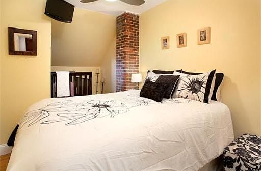 Sunny one bedroom townhouse condominium with private entry. Spacious living room with hardwood floors, wood burning fireplace, custom closet with laundry, surround sound. Kitchen has granite counters, stainless steel appliances, gas cooking and a breakfast bar. Bedroom with hardwood floors and custom closet. Recently updated bathroom with bead board and subway tile. Self managed building with 100% owner occupancy. Close to T, #43bus, Zipcars and Hubway.