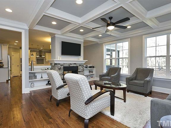 Custom built 4 bedroom home just minutes from Wake Forest. 1st floor master w/trey ceilings & walk-in closet, living room w/coffered ceiling & double sided fireplace, huge kitchen w/ss appliances, granite & walk-in pantry. Upstairs you'll find 3 more bedrooms, including one w/an attached playroom, a large bonus room, an office w/a closet that could easily be used as 5th bedroom, & an additional flex room. Oversized garage is great for larger vehicles. Front & back yard irrigation. Tankless water heater.