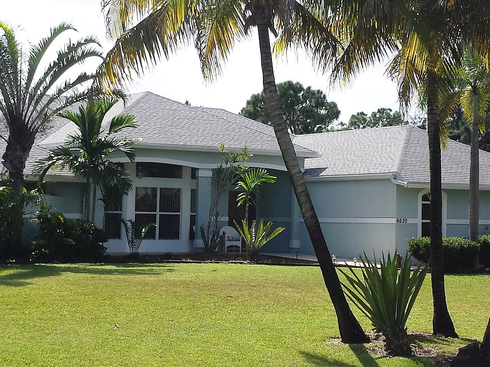 Amazing Custom 4/3 with 750sqft finished 3 Car Garage. Tropically landscaped with lots of Palm tree's & fruit tree's. Abundance of privacy, 1.2 acre lot backs up to a canal. 1993 Royal Wall Construction(Solid Poured Concrete).5 year old Trane A/C. Roof Replaced in 2011 with a 50 year 3-D shingle and new skylights. City water available for hookup. Oversized master with sitting area and his and her's walk-in closets. 12ft pocket sliding glass doors that open up to an enormous pool and covered screened patio. Home has complete hurricane panels and the coveted north south exposure. located on a paved dead end street, The lot has excellent drainage and is extremely dry. Sprinkler system is fed from a well and the canal. Great location less than 2 miles to I-95, 5 miles to local beaches Brokered And Advertised By: Realty Associates Florida Prop Listing Agent: Zachary T Schmidt