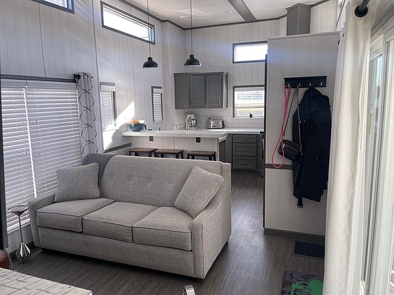 Welcome to the year round Park Grand Resort! This 2023 Park Model is ready for comfortable living in all four seasons and has LAKEVIEW from 3 sides and features an electric fireplace, eat at bar and lots of storage. Check out the sunken master bedroom which gives you more head room in the bedroom and loft. The loft has room for your home office as well. The bathroom has tons of cabinets and a large corner shower unit. Kitchen opens up into the great room. Don't miss the washer-dryer closet (washer and dryer are included) or use it as a huge pantry. At Park Grand the lot rent is $3,200 per year and includes water, sewer, one side of a boat dock, snow removal and area maintenance. There is a gazebo and 2 large fire pits you are welcome to use. When you buy a park model, buyer will need to pay 7.25% sales tax to Mercer County and carry $100,000 liability insurance policy. The buyers must be approved by the park. Since purchasing the sellers have added a Custom insulated patio roof with two ceiling fans, dishwasher, washer and dryer and reverse osmosis water filter. The following items will stay with the property: Foldout sleeper couch, main bedroom mattress, 3 bar stools, TV, washer and dryer, microwave, stove, refrigerator, vent hood, wall mounted knife rack, and coat hooks.
