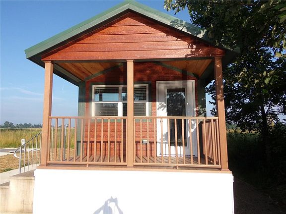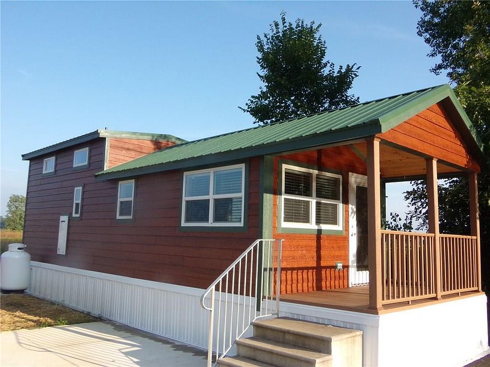 2019 Canterbury Deluxe Cabin. 6x10 covered deck off the front of unit, vinyl siding to look like wood. Metal roof and skirting. Inside master bedroom, entire house is Knotty Pine, full bath, finished loft area, great room with kitchen and dining room. Couch pulls out into a bed. Lot backs up to state property on 2 sides. Channel in front for dock, other side another Park Model coming. Comes fully furnished with furniture! Lot Lease $3,000 per year includes 1 side of a Dock, street lighting, and road maintenance. Buyer pays for water, sewer, trash, Midwest Electric, and propane if required. Buyer must have a $100,000 Liability Insurance coverage. Park owner will perform a $40 background check at the cost of the Buyer. MSRP price is $59,379.00 plus $2,500 prep. SALES PRICE IS $54,981!
