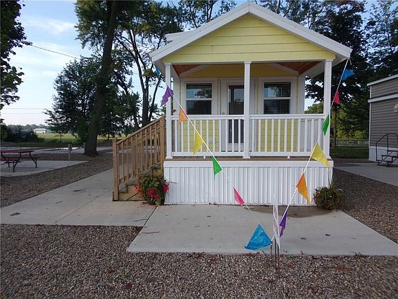 2018 Canterbury Deluxe Cabin. Yellow in color. Large covered porch with a great channel and lake view. GFA, 3 wall units, skirting, all Knotty Pine Interior. Living room couch pulls out into bed. Nice loft area. Comes completely furnished with furniture, 2 burner cooktop, microwave, refrigerator, and cathedral ceiling. Lot Lease $3,000 per year includes 1 side of a Dock, street lighting, and road maintenance. Storage garage being built optional 10x16 units @ $600 per year. Buyer pays for sewer, water, trash, Midwest Electric, and propane required. Buyer must have a $100,000 Liability Insurance coverage. Park owner will perform a $40 background check at the cost of the Buyer. MSRP price is $56,511 plus $2,500 prep. SALES PRICE IS $52,325!