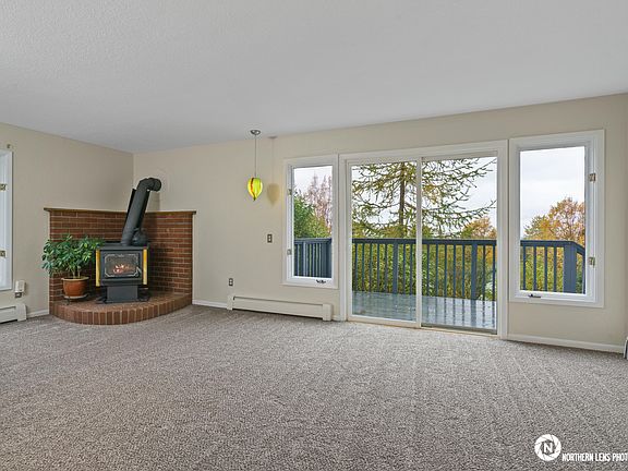 Sunny half-acre private hillside lot in desirable neighborhood. Multi-level home w/ 3 BRs plus office. Enjoy city and mountain views from living room & decks. Modern updates and lots of storage for the AK lifestyle. Quick access to Hillside and STA trails, yet still only minutes from Anchorage life. Beautiful 16x20 shop/studio built in 2006.
