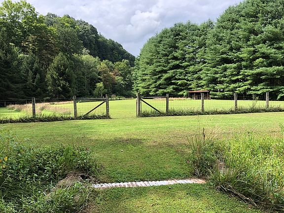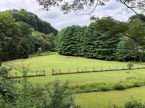 At one time was used as a horse farm. Still has the horse stall and barn both being in good shape. The land is truly something to see. Simply beautiful in several directions with much piece and quiet. Postcard views. A small stream adds to the scenery, House has wrap around porch to enjoy the picturesque views. Home also has hardwood floors. Much wildlife. Steps leads down to one side of property. Has electricity at top of steps to install lights if desired.