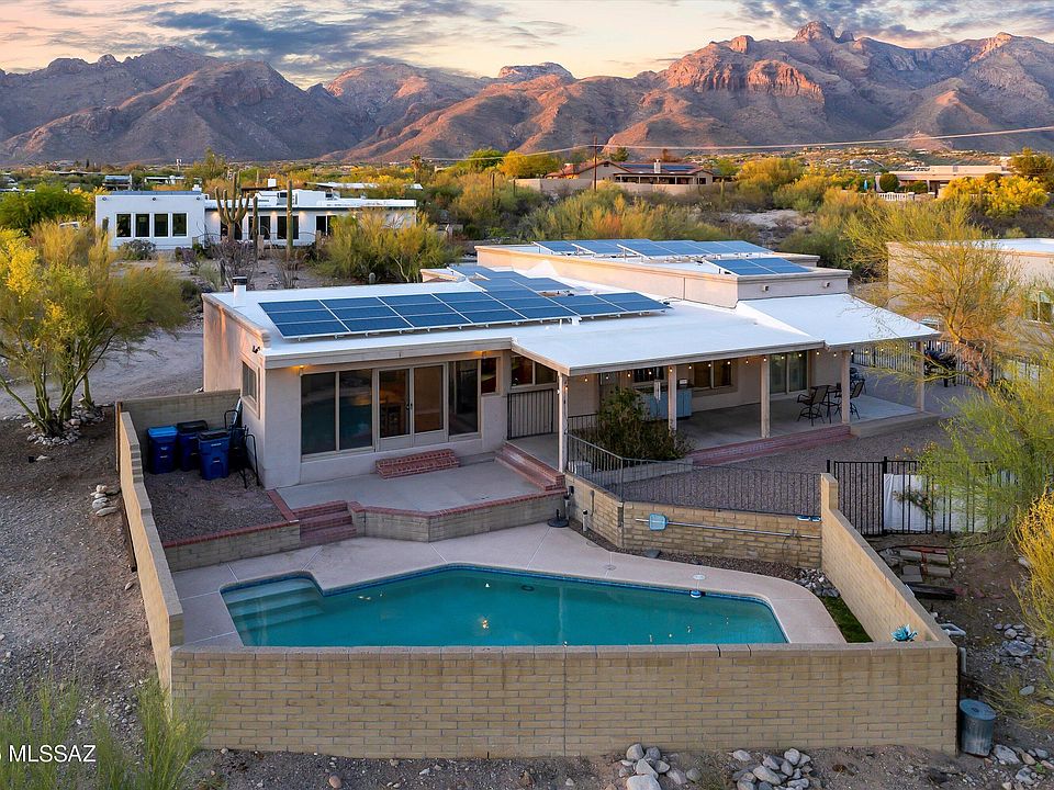Located in the heart of the Foothills, District 16 this wonderful MULTI-GENERATIONAL home checks the boxes. Single level 4 bedroom/3 bath main house with 1 bedroom/1 bath beautiful guest house. 1973 main house has updated kitchen & baths, knotty alder cabs & new/newer appliances. Spacious formal living with wood-burning fireplace & beautiful exposed beams. Large kitchen eating area w/wood framed wall of windows 6.5 feet tall overlooking pool area, city & mountain views. Split plan. Expansive fun-zone activity area w/10' ceilings. Roofs just recoated in February. Newer 5 ton/15 seer HVAC for main house. No qualify, FULLY PAID solar lease w/5 years remaining! LOW elec bills. Don't miss the over-sized 3 car detached garage & large storage. Room for RV parking. Location, location.