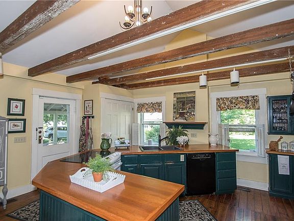 Uniqueness at its finest! Formerly known as the Aston Inn, this Historic Home is complete with original charm! The home has beautifully preserved original hardwood floor throughout. The living room has the perfect antique fire place as its focal point. The hearth room has enough room to add your dining area next to the cozy faux fireplace. In the kitchen you'll find amazing wood beams & a large island w/2 cutouts for casual dining & entertainment & updated counter tops. Upstairs is the master bedroom that leads you to the other two upstairs rooms. Also from the 2nd level landing, you can access the relaxing upstairs porch which serves as another access point to the other rooms. Don't miss the chance to own a piece of IN history!