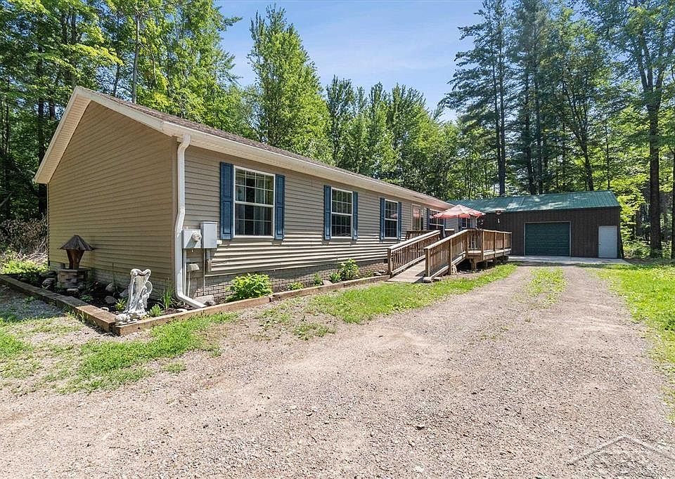 RIGHT AT HOME ON SANDY RIDGE! This 1 story home with just over 2,000 sq ft of living space and an attached 32’x54’ pole barn just may be your new home sweet home! You'll find five bedrooms, one or two of which could easily be used as an office/bonus room, and two full bathrooms. Lots of natural light and an open concept layout help to highlight the many beautiful updates of this home, including all new flooring & paint throughout, new kitchen cabinets, granite counters and stainless steel appliances, a new custom tile shower in the primary bath, stylish new light fixtures, brand new central air, updated furnace, lights in the pole barn, all new gutters with leaf guards, flower beds, improved driveway, and more, you'll be happy to just move right in! A number of trees have been cleared from one side of the property to prep for a bigger yard. This home sits on a little over 3 acres, located in the quiet neighborhood of Edenville, near M-30 for an easy commute. Be sure to check out this listing today!