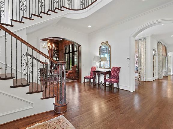 This elegant home has a wonderful floorplan that creates privacy and spectacular views of the sparkling pool and outdoor spaces from the living areas. The library showcases a dramatic ceiling, detailed millwork and a handsome stone fireplace. The formal dining room leads to an impressive kitchen with exquisite countertops and Wolf and Subzero appliances. A vaulted ceiling with beams and views to the exterior are highlights in the family room. A downstairs master bedroom features a stunning bathroom with impeccable finishes, and large walk-in closets. An expansive laundry room offers a sink and an abundance of cabinetry. Three ensuite bedrooms and gameroom complete the upstairs. This home has a three car garage