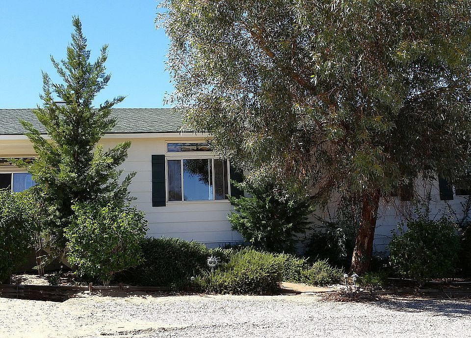 Fabulous home on little over 1 acre. Each bedroom has its own covered patio. Garage has attached guest suite. Property is professionally landscaped with timed sprinkler system. Upgrades include two propane fireplaces (living room and guest house), wood flooring, tiled bathrooms, double paned screened windows and 9' ceilings throughout. Wall corners are all rounded. Separate stain glass windows accent the living room, dining room, and front entry. Large private screened patio with spa and entertainment area.