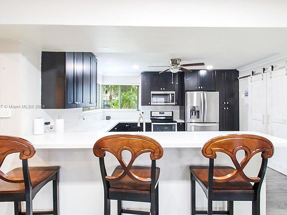Single-family home. The kitchen is equipped with quartz countertops & stainless steel appliances, while Brazilian floors & elegant bathroom fixtures add a touch of sophistication throughout the house. The farm doors, newer roof, newer windows, shutters & updated electrical panel provide peace of mind for potential buyers. The pipes have been recently changed, adding to the home's overall appeal. Outside, the property offers two sheds & a fenced patio for added storage & outdoor living space. Inside, the home features a formal dining room & a den or bonus room that can be versatile for various needs. The primary bedroom has two walk-in closets & a spacious en suite, two additional bedrooms & a bathroom. Surround sound & ring alarm system. Close to Broward Community College & the Turnpike.