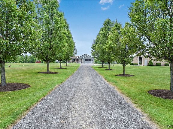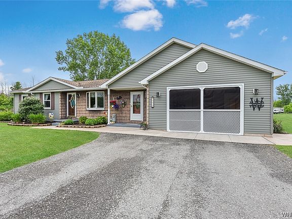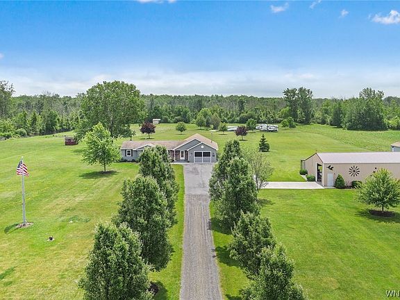 Welcome to your country loving oasis with wide open spaces! VR pricing, seller will consider offers between $450,000 and $499,900. This charming 1701 Sqft, 3 bed, 2 full bath ranch with finished basement, located on a quiet street and tucked in on 8.725 acres. A warm and inviting ambiance with an open concept kitchen, dining and living room, creating an ideal space for entertaining family and friends. The kitchen boasts Corian countertops, stainless steel appliances and soft touch maple cupboards. The living room features cathedral ceiling, plenty of natural light, wood burning stove and sliding glass doors, leading to a Trex deck and stamped concrete patio, offering the perfect setting to enjoy the serene surroundings. An attached garage, complete with radiant flooring, water supply and center drain. Enjoy the fully stocked pond to its fullest with 30 amp/110-amp service and 3 additional outbuildings including a 1 room cabin, a shed for storage and a chicken coop. If that's not enough, a 36 x 48 fully insulated pole barn with a 1/2 bath, wood burning furnace, a 12 x 48 lean to with a steel roof and solar panels reducing your electric bill to an incredible $17/month. A MUST SEE!