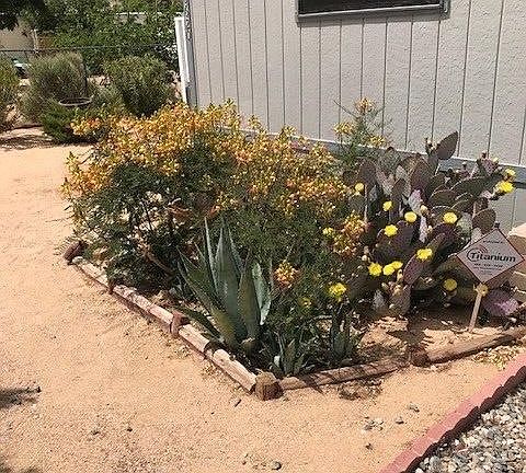 You will see the pride in ownership as you approach this home. The 2 bedroom 2 bathroom home was landscaped by the owner who nurtured the landscaping to maturity. Both the front and back doors have security screen doors, and there is a security gate at the entrance to the fully fenced property. The roof is newer and is a 40 yr roof. The exterior received a fresh coat of paint recently. The home has a security system complete with exterior camera.