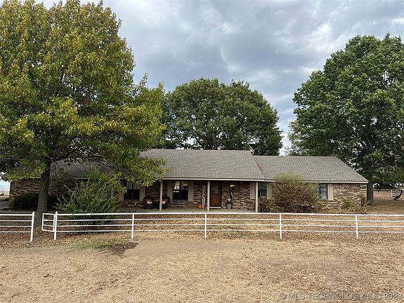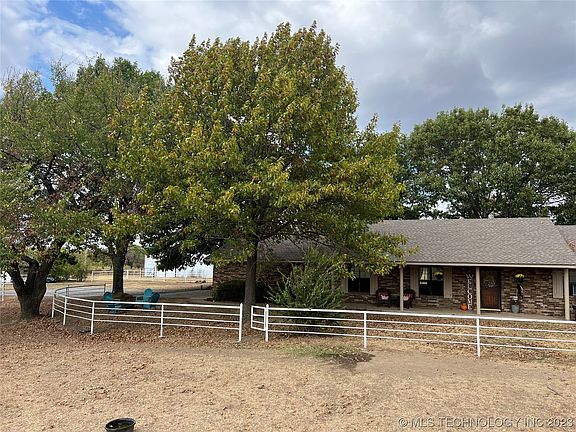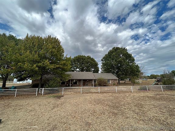 Beautiful 5 acres, ranch style - 4 bed, 2.5 bath with sunroom/flex space that can be used for multiple purposes. Open floor plan with large living area open to dining room and kitchen. Spacious bedrooms - three walk in closets. Oversized two car garage with additional space for work space/mower storage. Laundry/mud room. Barn has cement floor, electric, two overhead doors, insulated tack/show animal room. Additional shed for animals and additional storage shed. Property partially enclosed with pipe fencing. Paved road right up to driveway. Peaceful country living close to town.