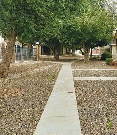 Charming move in ready townhome! Contemporary cabinets in kitchen and bathrooms with plenty of storage. Kitchen table is mounted to the wall and comes with 4 chairs. New paint, and laminate wood flooring in bedrooms. Nice 18in Tile on the entire bottom floor. Recessed lighting in living room. TWO master bedrooms! Each with their own bathroom One has a shower and the other tub shower combo. All appliances included. Great West Valley location. Close to pool and spa. Assigned covered parking spot.