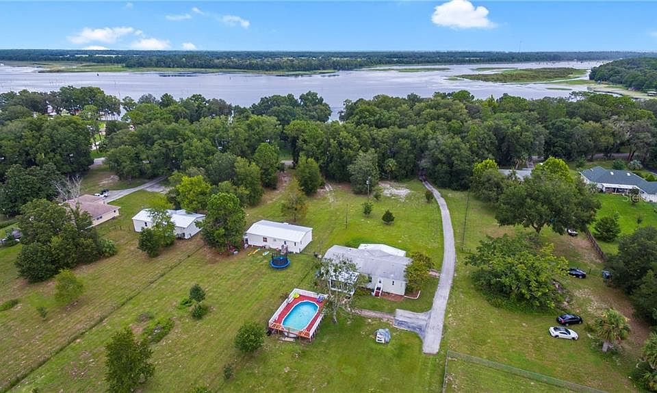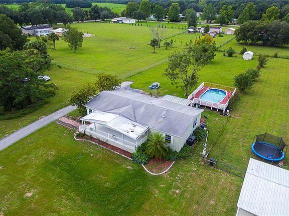 Spectacular 3 Bed/2 Bath Double Wide Pool Home nestled on 1.32 acres. Peaceful - Country living located across from Lake Rousseau, a 3,500-acre dam-controlled lake and one of the finest in the state for trophy-sized bass and great crappie and bluegill. Just minutes away awaits an incredible array of activities for the outdoor enthusiast. Journey out onto the gorgeous waters of Crystal River, Rainbow Springs State Park, Withlacoochee River and the natural springs of the Rainbow River ~ your destination for boating, canoeing, kayaking, water tubing, snorkeling, camping, and fishing. This property is set on high ground, up a picturesque setting. A long winding driveway and colossal front porch welcomes guests into this spacious home featuring; open split floor plan, cathedral ceiling, and family room w/wood-burning fireplace. Master suite and ensuite offer; double sink vanity, garden tub, and step-in shower. Inside laundry room. Large eat-in kitchen with island/bar counter, pantry, plant shelving, and lots of cabinetry. Beyond the glass French doors is an enclosed rear porch overlooking the pool, and large private yard with plenty of space for the family and farm animals. NEW HVAC 2018, NEW Well Pump 2018, Pool Wood Deck 2008, Utility Shed 2004. NO HOA, NO Deed Restrictions, NO Flood Zone.
