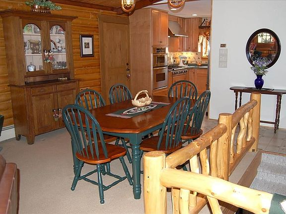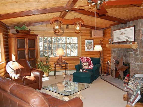 Honed log timbers with deep ricjh wood tome, notched and caringly laid into place are the trademark of this solidly built log home. Plank flooring leads the eye to a river rock fireplace, the center piece of the entire home. Vaulted Great Room ceiling reacj to the open loft above. Living, dining and the spacious kitchen are perfect to create years of fond memories. 1400 sq ft of wrap around decking including a private hot tb retreat provides its an added living space.