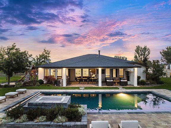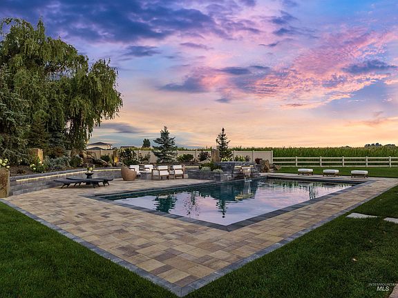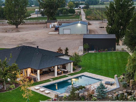 A breathtaking custom built & truly magazine-worthy paradise in the country. An 8’ solid mahogany, arched double door welcomes you in to a sprawling floor plan w/ towering ceilings accompanied by 6' windows offer an abundance of space & natural light. Opulence continues through the kitchen w/ huge island & custom cabinetry. Expansive master suite offers direct access to ~600sqft of covered patio boasting a gas grill & fridge encapsulated by granite counter tops & fireplace w/ a leathered granite hearth. Immaculately landscaped rear yard is an entertainer's utopia - A 10' deep salt water pool is the center feature of this oasis, complimented by a Belgard paved custom pool deck w/ multiple gathering places. Enjoy ranch-like independence & seclusion w/ corn fields abutting to the south & west of the property & views of the Owyhee mountains beyond. Relish in 2 detached shops featuring their own bathrooms, 200amp service w/ 220V in each. Fully insulated, heated & cooled. Self-sufficiency w/ your own well & septic.