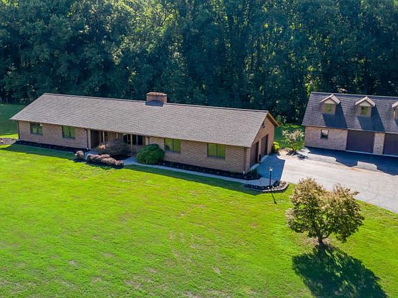 Situated on a 3+ acre open lot backing to trees, this renovated rancher is move-in ready! A foyer entry welcomes you inside to find a family room with bright bay window and stone surround fireplace. Remodeled kitchen boasts new granite counters, new stainless steel appliances, new fixtures, and freshly painted white cabinets! Dining room with slider access to the deck and backyard. Owner's suite features lavish fully remodeled bathroom with an oversized frameless shower with feature ceramics, double vanity, freestanding tub, and new fixtures! Expansive lower level with in-law suite potential hosts a huge rec room, 3 bonus rooms, a full kitchen, a living room, bar area, and ample storage space! Freshly painted attached 2 car garage, detached 2 car garage with loft. New flooring, new carpet, landscaping, bathroom updates, and more! Welcome home!