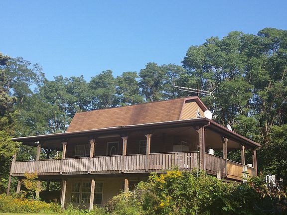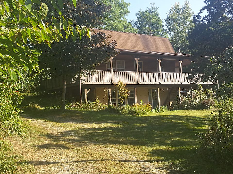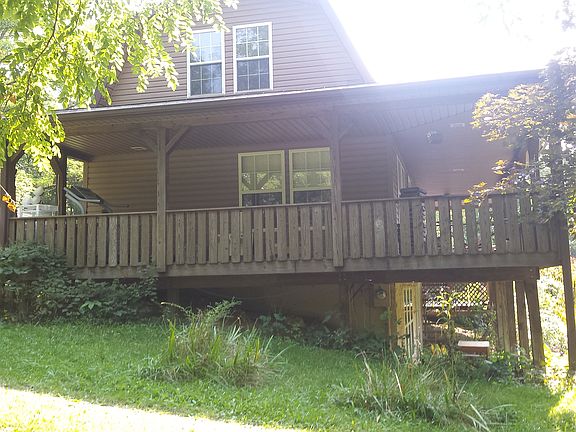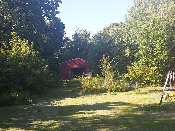 large wrap around porch, updated bathroom, large kitchen, metal pole barn 24x42, wooded lot, House is situated off the road and surrounded by woods.