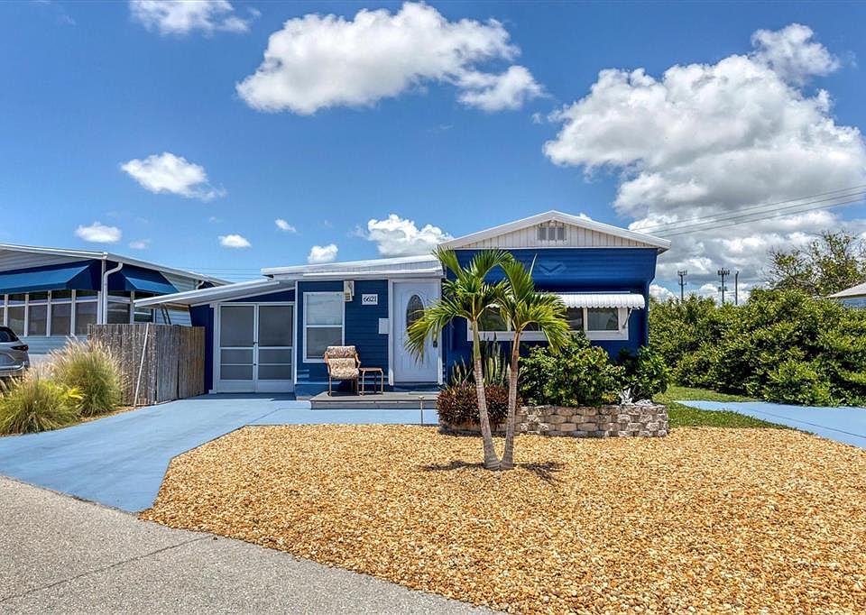 Outdoor living and plenty of parking on this Lot and a Half in the Pet Area of the highly desired, active 55+ Trailer Estates community! Two Bedroom, one Bath Mobile Home with open floorplan and great potential. Lots of room to build out and add square footage. Kitchen is open to living/dining areas with ample cabinets. Master Bedroom has good closet space; or, one of the closets could be turned into an en suite half bath. Laundry/utility room. 9'x14' Golf cart garage or Workshop and room for storage! Fully fenced backyard has outdoor shower and very private. Entertain your family and friends on the large rear patio with a wet bar and mini-fridge You own the land. Boaters have direct access to Sarasota Bay from the Marina. Enjoy the large heated community pool, hot tub, gym and wood shop. The community buzzes with pickleball, shuffleboard, kayaking, horseshoes, bocce, dancing and more. A US Post Office on site. 10 minutes to Sarasota-Bradenton Int'l Airport. Convenient to shopping, restaurants, the Arts and everything Bradenton/Sarasota has to offer. Sold AS-IS with right to inspect. Bring offers!