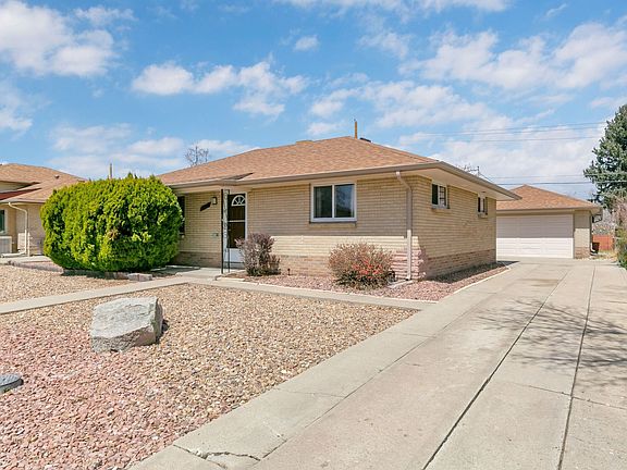 Enjoy this classic Brick mid century Olde Town Arvada ranch home. 5 min walk to Olde town shops/Grandview Avenue is up the street with Bars, restaurants and the light rail. Also 5 min from Costco and other 1-70 Access. Newer paint and newer carpet, a lot of windows and classic features. This home has 3 bedrooms, 1 full bathroom, additional 1/2 bathroom and a long driveway with a 2 car detached garage, fenced back yard with a 4 foot fence and low maintenance front yard. Home faces SOUTH, great cozy home and 1 block away from Columbine Acres park for nice walks, playground and tennis courts, Easy access to washer and dryer all on main floor. On demand tankless water heater, Swamp cooler and Dogs approved.