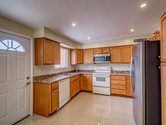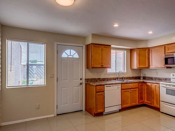 Beautiful inside! Great opportunity to own a fully remodeled 3 bedroom, 2 full bath town home with mountain views from the living room. Large eat-in Davis kitchen has plenty of cabinets and lazy susans. Ceramic tile and ceiling fans throughout. All appliances included and there is a newer washer and refrigerator. Roof re-coated in 2018. Back yard is low maintenance and big enough for gardening and entertaining. Storage shed. Don't miss out on this home!