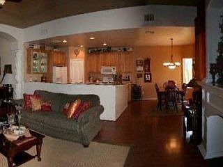 Designer paint warms the great room w/ a stunning suede ceiling treatment that brings dramatic appeal to the space emphasizes thecoffered ceiling. Custom fireplace mantel adds a touch of romance w/ architectural detail estate-like charm. Warm flooring grounds the home w/ slate-like tile cherry Pergo wood.