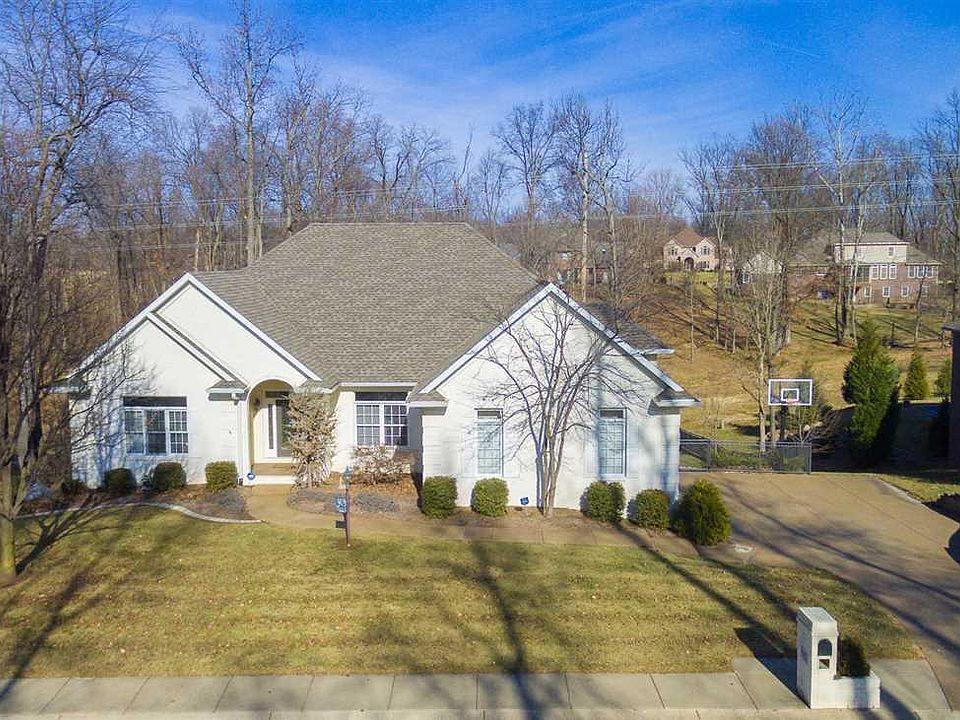Beautiful painted brick home in desirable River Ridge Subdivision. Full partially finished walk-out basement that leads to a large deck. Nice theater room that sits over the garage. Large kitchen with floor to ceiling windows that overlook the tree lined backyard. Kitchen is open to Living Rom and has a nice breakfast bar and dining area. Columns welcome you to the Dining Room. Master bath has whirlpool tub, walk in shower and nice size walk in closets. Fireplace in Living Room and Master Bedroom.