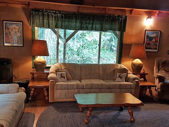 Charming 3 bedroom cabin on Sunny Lot near the Sandy River. Enjoy basking in the sun on huge cedar deck. Wood floors downstairs plus vaulted ceilings. Large brick fireplace with a DEQ fireplace insert. Pellet stove too. Has an updated ATT septic system, replaced roof, outside paint job and vinyl windows throughout. Carport with storage area and covered wood storage too. Great full-time or vacation getaway.Improvement List Available.