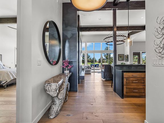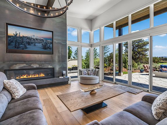 Modern luxury meets Central Oregon lifestyle at Pronghorn! Situated on a hilltop overlooking the world renowned Fazio golf course w/360 views of the Cascade Mtn range & beyond. Enjoy sunrises & sunsets from 2 rooftop decks, martini deck complete w/tv, theater sound, firepit & heater for year round comfort. Inside you'll discover tranquil colors & rich wood + stone & raw steel accents. Beautiful White Oak wide plank floors & hand made Arto tiles & stone counter tops. Picturesque windows throughout allow natural light to fill the interior & showcase the Chef's kitchen complete w/Wolf & Subzero appliances. Expansive cabinetry & built ins w/buffet & bar in dining area, modern gas burning fireplace & bold fixtures. Primary suite is a must see! 2 additional suites on the main level & 2nd story bonus room or 4th bedroom w/attached full bath. Hand chiseled flagstone patios, 3 bay garage w/Sprinter garage, epoxy floors, storage, dog wash station & much more. Tour of Homes Award winning home!
