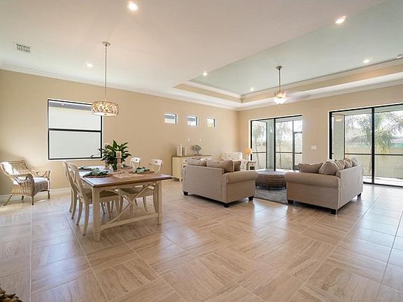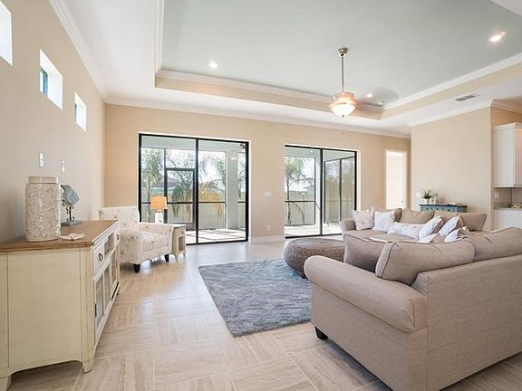 Under Construction. Fiddler's Creek is a small community of only 27 homes in the perfect location! These custom built homes have all the upgrades that every buyer will fall in love with. The integrated floor plan is open, light and bright with zero wasted space and perfect for entertaining or family gatherings. This 3 bedroom and 3 bath home has a large den/home office that can easily be made into a 4th bedroom. Standard in every home are tray ceilings and crown molding through the living areas, 42 inch raised panel Thermafoil cabinets, stainless steel sink and appliances. Also included are 8 foot doors, 10 foot ceiling and 5 inch upgraded base board thoughout. Tray ceilings in the foyer and the living room along with crown molding, accent paint, ceiling fans, and superior quality lighting packages. The bathrooms have granite as well and walk-in showers. 7 ceiling fans and recessed lighting are also standard. The exterior accented stone work on the front of the home and brick pavers on the driveway and walkway. A generous landscaping package is provided along with a screened lanai is also standard among many other features. This is a maintenance fee community that includes ALL lawn care. The home pictured here is not the actual home. Estimated completion date is late August.
