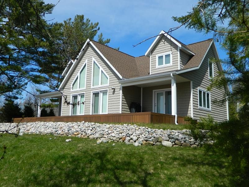 NEW 2015 CONSTRUCTION: This spacious & beautiful lake house offers 2,178 Square Feet of Open Living Space. 3 BR, 2 BA, home has unobstructed views of Hubbard Lake, from the lake wall of windows & French doors that lead to the full house length deck. Features include: Vaulted Ceilings, Oak stair Railing with wrought iron balusters (2020), solid maple kitchen and bathroom cabinets. Silver Line Anderson casement windows throughout. 4 Ton Whole House Central Air 2018. Carrier 95.5% Energy Efficient furnace. Maintenance free Teed Cedar Impressions Double 7 inch Vinyl Siding & Ever Grain composite decking. 24 by 36 Pole Barn, 10 by 14 Shed with 5 foot Lean to on each side. 100 feet of prime lakefront, on the North East Shore, with steel break-wall, and much more. Come take a look at lakefront living at its finest!