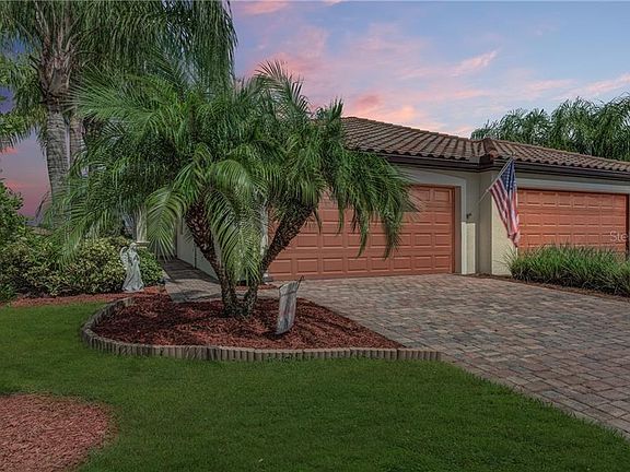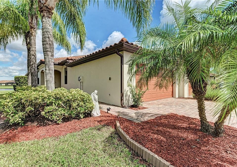 VALUE PRICED VILLA! This WATER VIEW Social Membership Villa in River Strand Golf & Country Club allows you to live the resort lifestyle without the extra golf fees! Nestled inside the gate of River Strand you don't have to worry about any noise from Port Harbour Parkway. This SPACIOUS, open floor plan Orchid gives you 2 bedrooms, 2 baths and a Den/flex room which is perfect for your OFFICE if you work from home. Original owners have added the extended lanai with 20/20 screens. Custom lighting gives you the light bright look and with a western side exposure you get that Florida sunshine that we all love. More Upgrades include: Tile extending into the Great Room, CUSTOM engineered hardwood in the Master Bedroom, custom LIGHTING & Ceiling Fans & a water softener! River Strand Golf & Country Club is a warm and friendly community with a 27-hole Arthur Hills designed golf course, 9 Har-Tru Tennis Courts, 8 Pickleball courts, 2 Resort-Style Pools, 6 Satellite Pools, Clubhouse with restaurant, social events, Community Center & 2 fitness centers in this luxury gated community with 24 hr. security & lawn maintenance . Convenient location to I-75, University Town Center, & beaches complete the package. River Strand Golf & Country Club: More than a Community, It's a Lifestyle.