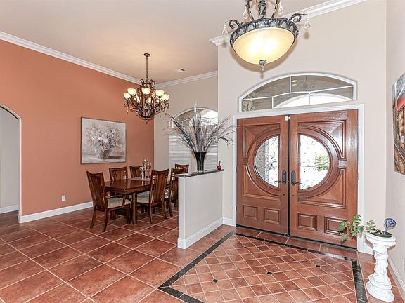 Gorgeous single story custom home on the lake and overlooking the 5th green of Pheasant Run golf course. Enter through the beautiful double door entry to find terra cotta tile with granite highlights, crown molding and 5 inch baseboards. Home features knotty alder cabinets throughout the inside and textured stucco with recessed lighting on the outside. The elegant kitchen has granite counters with full back splash, double ovens, GE Profile stainless steel appliances, a sub-zero fridge/freezer and a walk-in pantry.Large on-suite is approximately 23 x 15 feet and features crown molding, double vanities, walk-in closet, 2 person jetted tub and shower stall with additional jets.Exquisite home inside and out. Please ask your agent for a feature list.