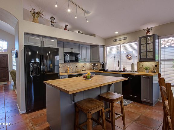 Come see this move-in ready home. Stone has been added to the front of this home along with a paver walkway and a brick planter to set this model above others in the neighborhood. It has been completely updated including kitchen cabinets with pullout shelves & beautiful butcherblock tops, wood design tile flooring, bathroom cabinets with granite countertops, large walk in master shower. Next, step out into the rear yard into an entertainer's dream including complete kitchen with built in Refrigerator, stainless steel trash drawer, & Kokomo grill. pavers throughout including accent lighting and landscaping. Red Mtn Ranch is complete with pool, tennis, golf, rec center and restaurant. Just minutes from shopping, schools, and freeway access.
