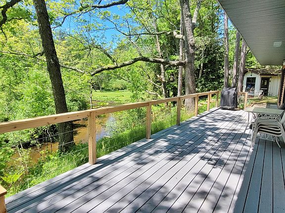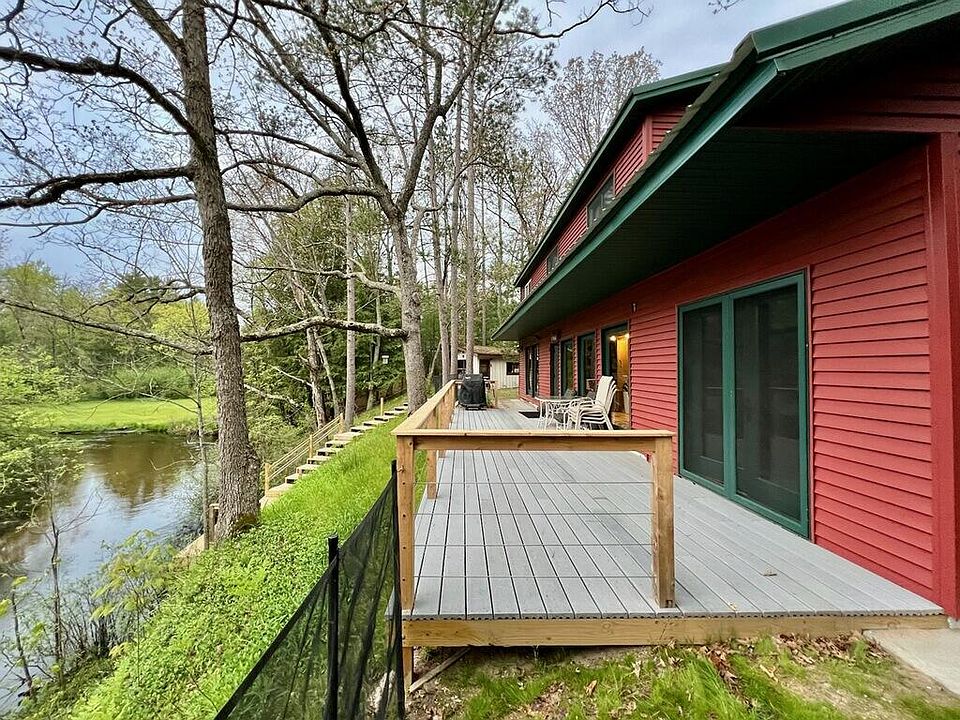 Salmon & Trout fishing from the front of the house! Discover your 4bdrm RIVER FRONT RETREAT nestled on the enchanting Baldwin River, in WORLD FAMOUS TROUT HEAVEN! This stunning riverfront property spans 4 natural acres, offering over 200 feet of trout and salmon-filled waters.The circle paved drive leads you to a charming 4-bedroom retreat that feels more like a LODGE, where artistic touches are everywhere. Deer, Bear's, yes, Bears, Turkeys, Etc. enhance the tranquility of riverfront living, where every day feels like a masterpiece. Your riverfront haven awaits. Short term rental OK!! This is a perfect Lodge style home. Internet at rd. Sleeps over 12. All Bedrooms have River view. 40ft+ DECK! ORV TRAILS EVERYWHERE, MAP IN DOCUMENTS! Mostly furnished! Backups accepted.