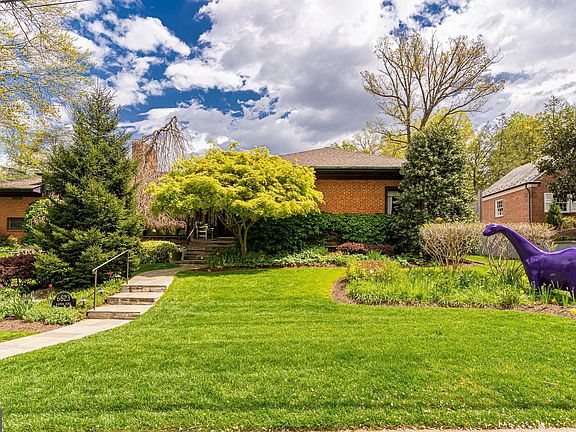 An understated exterior belies a whimsical home loaded with character and charm. Sun filled mid century modern architecture flows seamlessly onto stunning outdoor patios surrounded by gardens. Think dining al fresco, morning coffee among the flowers, outdoor parties into the evening~ Welcome to the purple dinosaur house! If you~ve ever driven past Radnor Rd on your way to downtown Bethesda you~ve certainly seen the dinosaur perched cheerfully on the front lawn. The updated open floor plan features spacious living and dining areas, a kitchen with vaulted ceiling open to the breakfast room and family room leading to the private backyard. 4 main level bedrooms including an Owner~s suite with sumptuous en suite bath, second family room a few short steps off the kitchen and an upper level private guest suite with sitting area and full bath. A spacious lower level offers a recreation room, game area, office, full bath, kitchenette and bonus room. Over-sized 2 car garage parking and additional parking for 3.