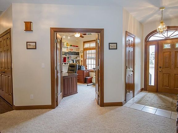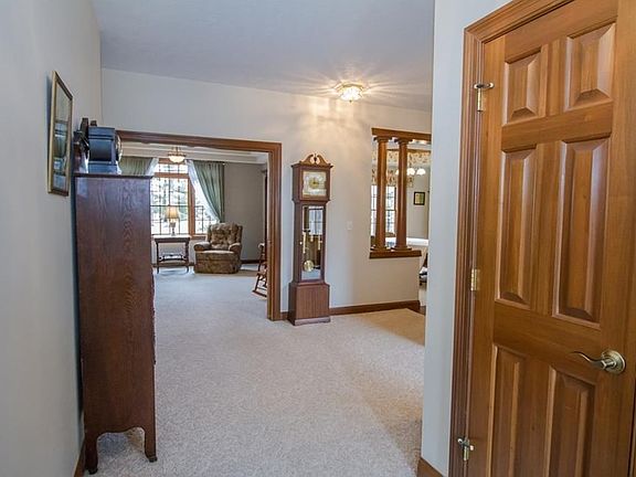Stunning 3 bed/2.5 bath brick 1-story home situated on a 1.8+ acre wooded lot! A short drive from town you will find this private and relaxing residence. The cement circle drive & beautiful landscaping welcome you. Immediately, you will notice the high-quality construction & how well this property has been maintained. Spacious light-filled floor plan includes a living room w/ pocket doors & trey ceilings, a formal dining room w/ columns, and an open-concept kitchen/family room combination w/ an attached all-season sunroom. The master suite has trey ceilings, bath w/ a whirlpool garden tub, shower, and 2 vanities. Third bedroom could be used as den or playroom. Other features: kitchen island, brick hearth fireplace w/ gas logs, newly remodeled guest bath w/ walk-in shower, large deck for entertaining, 3-car attached garage w/ storage cabinets, and a steel sided 30x40 barn w/ cement floor & 220 electric. Quiet & peaceful setting, gorgeous views, convenient location, & many amenities!