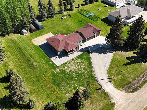 If you're in search of an outstanding property that combines modern energy efficiency, privacy, and abundant space for vehicles and recreational equipment, look no further, this is the one! Built in 2023 by Mint Homes, this beautifully designed bungalow features a fully developed basement and an open concept floor plan that exudes quality and style. The chef inspired kitchen is a true showstopper, offering custom cabinetry, granite countertops, premium stainless steel appliances, and a stunning copper farmhouse sink. The main level is thoughtfully laid out with a spacious primary suite that includes a large walk-in closet and luxurious 5-piece ensuite. The bright and airy living and dining areas feature vaulted ceilings and patio doors that lead out to an expansive backyard, which ideal for entertaining. Two additional bedrooms, a 4-piece main bathroom, mudroom with additional storage and a convenient laundry area complete the main floor. The triple detached garage, built in 1998, is a hobbyist's dream. It is equipped with 220V wiring, floor drains, a mezzanine, three newer walnut stained overhead doors with remotes, man door, and a negotiable hoist. Both the home and garage offer in-floor heating for maximum comfort. Additional upgrades include a 95% efficient natural gas boiler system and recently replaced water well and septic pumps (2023). The property also benefits from New Home Warranty coverage and there is a gas hook up for a bbq on the front deck. Set on a quiet no exit road, the outdoor space offers plenty of room for both relaxation and some outdoor fun, on the huge lot with a beach volleyball court and only a few visible neighbours. The two storage sheds on the left have power and stay with the property. Don't miss your chance to own this amazing property!