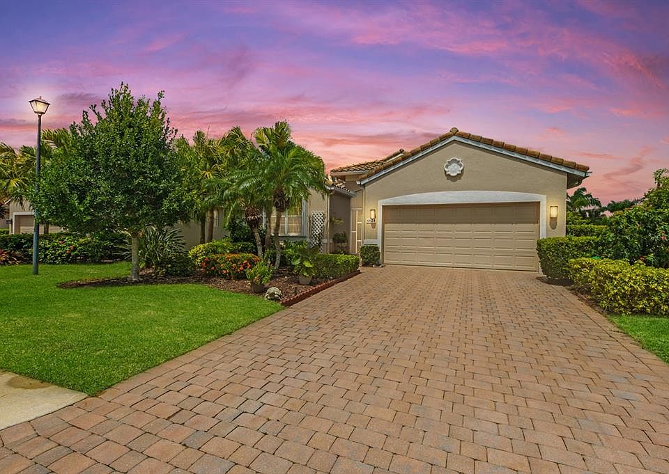 Experience Paradise in the incredible 55+ community of Cascades at Sarasota! This stunning two-bedroom, two-bath home + den/office is MOVE IN READY and being offered with select furnishings to be included (Furniture list may be provided)! Situated on one of the best lots in the entire community, this professionally landscaped corner lot offers serenity, ultimate privacy, and lush greenery for your enjoyment. Inside, the grand entry features cathedral ceilings and porcelain tile floors throughout the spacious great room, open dining room, and light-filled breakfast room. Custom upgrades and designer amenities abound, including professionally remodeled kitchen cabinets, 2 hurricane-impact glass sliding doors and accordion shutters on the windows, newer carpet in the bedrooms & den, and an outfitted two-car garage with polyaspartic flooring and storage racks. Additional features include in-ceiling speakers, a fully remodeled guest bath with walk-in shower, updated primary bath cabinets, solar light tube in the kitchen, granite counters, and NEW stainless steel appliances. The luxurious master retreat boasts dual walk-in closets, custom-built vanities, a corner soaker tub, and a separate walk-in shower. Glass doors in the main rooms provide picturesque views of the screened lanai and oversized backyard, adorned with colorful plantings and a variety of palms and specimen trees. This home offers a maintenance-free lifestyle, nestled in a charming gated neighborhood with mature trees and lush tropical landscaping. Enjoy access to a resort-style clubhouse with indoor and outdoor amenities, promoting an active lifestyle. Cascades at Sarasota offers tennis, pickle ball, bocce ball, a large gym, a resort-style pool and spa, horseshoe, corn hole, an art studio, billiards room, dance studio, and a plethora of social activities. Close to shopping & dining at UTC, I-75, downtown Sarasota and Bradenton and the SRQ airport, this pristine home is your rare opportunity to become the newest owner in Cascades. Don't miss this chance to elevate your lifestyle!