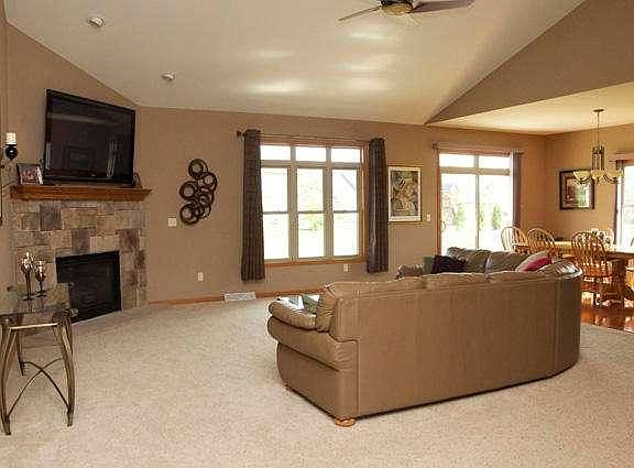 This stunning 3 bedroom ranch offers a large master suite with a walk-in closet and bath with double vanity and private shower. First floor laundry. The kitchen features staggered height and depth cabinets wth crown moulding with an over sized island, built-in desk and a pantry. There's granite in the bathrooms and kitchen that are amazing! Open living space concept - great for entertaining! The basement has egress windows that open, drywall, and is stubbed for a full bathroom and a wet bar!!
