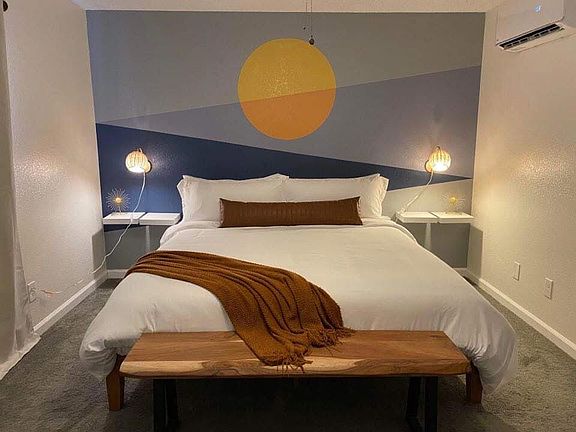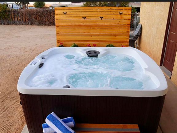 This FURNISHED gorgeous home WITH AMAZING VIEWS OF JOSHUA TREE NATIONAL PARK has been professionally designed and decorated with peace and style in mind. The third of an acre lot gives you plenty of privacy and space and the views of the Joshua Tree National Park mountains are amazing. There is plenty of open desert to explore on your evening walks and it's only 1.5 miles to 49 Palms Oasis Trailhead. 2 bedrooms,2 bathrooms, a dining room, a nice clean kitchen! NEW HOT TUB! The rooms have energy efficient mini-splits that provide heating and cooling while keeping your electric bill down. The City of 29 Palms has undergone extensive renovations and development downtown (Project Phoenix) including the new Joshua Tree National Park Visitor Center, a farmers' market, a community theater, and a community center. All furnishings and decor (which are almost brand new) are included so if you're looking for an easy move, a vacation home, or a rental this is it!