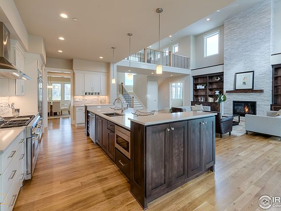 Brand New Net Zero Contemporary Home w/6 Bedrooms and 2 Home Offices. Gourmet Kitchen w/ Large Island Open to Great Room, Fireplace w/ Floor to Ceiling Stonework. Bridge w/ Loft leads to Master Suite & 3 En-Suite Bedrooms. 4 Car Garage, Fully Landscaped Lot. Master features Sitting Area, Fireplace, Freestanding Tub, Steam Shower & Spacious Walk-In Closet w/ Island. Lower Level has Stone Fireplace, Spacious Wet Bar, En-Suite Bedroom, Exercise Room or Second Study plus Media Room. Net Zero Energy Star home. 19.8 KW Solar PV System w/ Federal Tax Credit available to Buyer. Legend Ridge is surrounded by Open Space and Trails that connects with the Boulder County Trail System. Please view both the Full & Immersive Video Tours