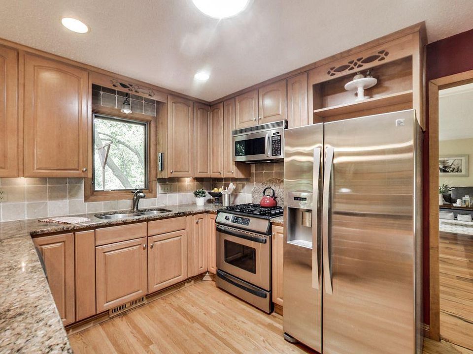 Spacious, Modern, and Beautiful, this gorgeous walk out rambler has a new large deck with breath taking views of the woods that feature the new Nine Mile Creek. Full of natural light, a gourmet kitchen with granite countertops and stainless steel appliances, custom cabinets, natural woodwork, and lots of space for entertaining. This charming Edina home features so many amenities. Absolutely a must see!, Directions France Ave south to 66th st west on 66th to Ridgeview Drive right on Ridgeview to valley lane to Limerick south on Limerick to address.