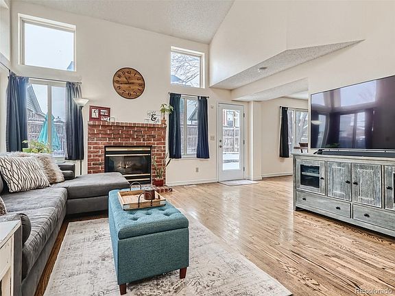 - Description: Laminate Wood Floor, Gas Fireplace W/Brick Surround, Neutral Tones, Vaulted High Ceilings, Large Windows, Open To Dining And Kitchen